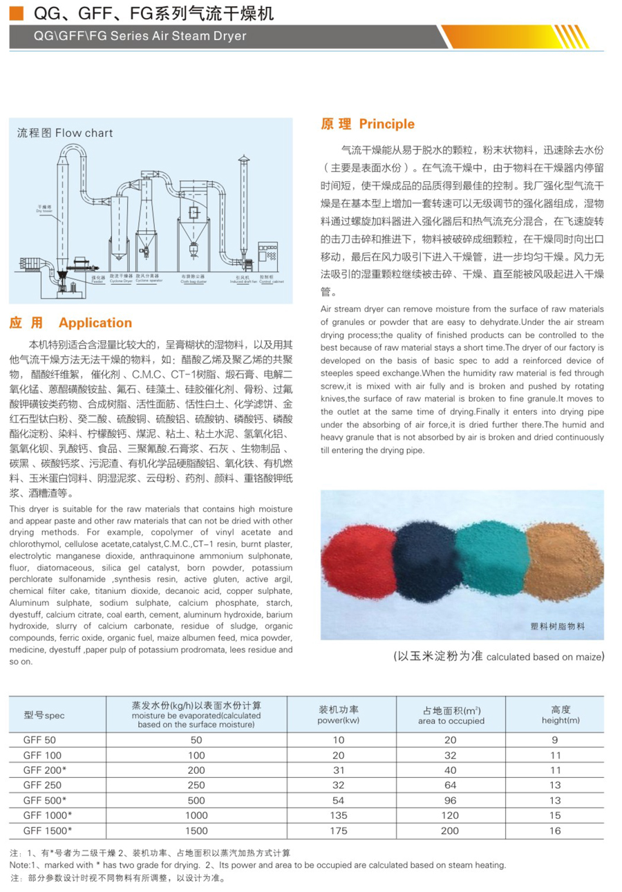 ◆氣流干燥以干燥粉狀或顆粒狀物料為主,其粒徑不超過1mm,由于操作氣速高、干燥時間短,一般適用于物料