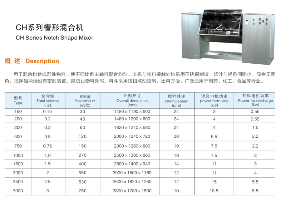 用于混合粉狀或濕性物料,使不同比例主輔料混合均勻。本機(jī)與物料接觸處均采用不銹鋼制造,槳葉與桶身間隙小,混合無死角,攪料軸兩端設(shè)有密封裝置,能防止物料外瀉,廣泛適用于制藥、化工、食品等行業(yè)。